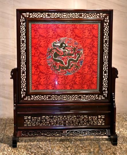 云錦《真金孔雀羽大團龍》地屏
