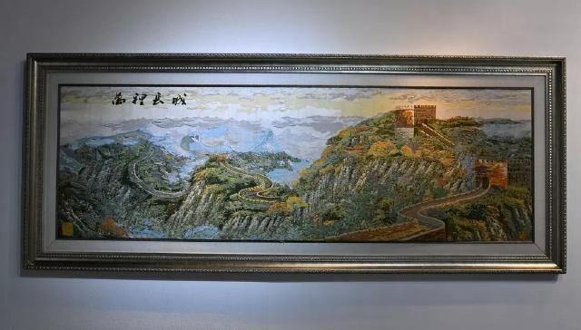 《萬里長城》是金文集數(shù)年之功完成的云錦巨制。觀者立于高山之巔,長城從峰巒疊嶂間伸向遠方,更有一旁朝霞相伴,使畫面錯落有致,層次豐富。