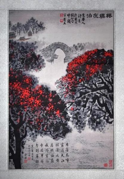 以當代著名畫家錢松喦的作品《楓橋夜泊》為藍本,是首次以傳統(tǒng)宋錦技藝來表現(xiàn)國畫風格的題材。