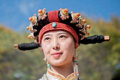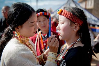 丹巴女子的成人禮(成年儀式)有著久遠(yuǎn)的歷史,也是一項(xiàng)傳統(tǒng)的選美、賽美活動(dòng)。成人禮一般以自然村落為單位,由活佛或者吉祥老人選擇吉日或是農(nóng)閑時(shí)間舉行。成人禮在藏語(yǔ)中稱(chēng)為“幾薩”,是“穿成年新裝”的意思。當(dāng)?shù)貪h語(yǔ)又叫“戴角角”,意指行成人禮的女孩要梳扎像牛角一樣的發(fā)束,造型奇巧別致。小女孩長(zhǎng)到16歲行過(guò)成年禮之后才算長(zhǎng)大成人,才能夠戀愛(ài)結(jié)婚。所以,成人禮對(duì)每一個(gè)嘉絨姑娘來(lái)說(shuō)都是人生歷程中的一件大事。嘉絨藏族非常重視對(duì)后代的教育,女人是部族的靈魂。所以女子成人禮充分體現(xiàn)嘉絨藏族關(guān)愛(ài)后輩、尊重女性的民間習(xí)俗,具有強(qiáng)烈的地域特色,顯現(xiàn)出鮮明的個(gè)性特點(diǎn)和母系氏族社會(huì)文化的基因。