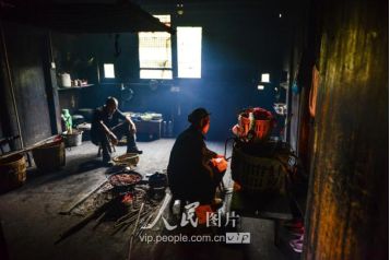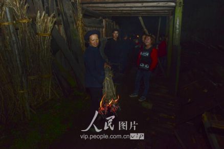 一般要到快過春節(jié)的時(shí)候,男方家才專門請(qǐng)人去接女方來洗糯米、打糍粑,新娘方能在夫家住上一夜;在來年農(nóng)忙時(shí)節(jié),又接女方來幫忙,夜里仍不能在男方家留宿,幫完忙當(dāng)晚即回去,只有待到女方有身孕后,新娘才到夫家長住。圖為11月16日夜,新娘潘芝銀家為準(zhǔn)備婚禮,燈火徹夜長明。