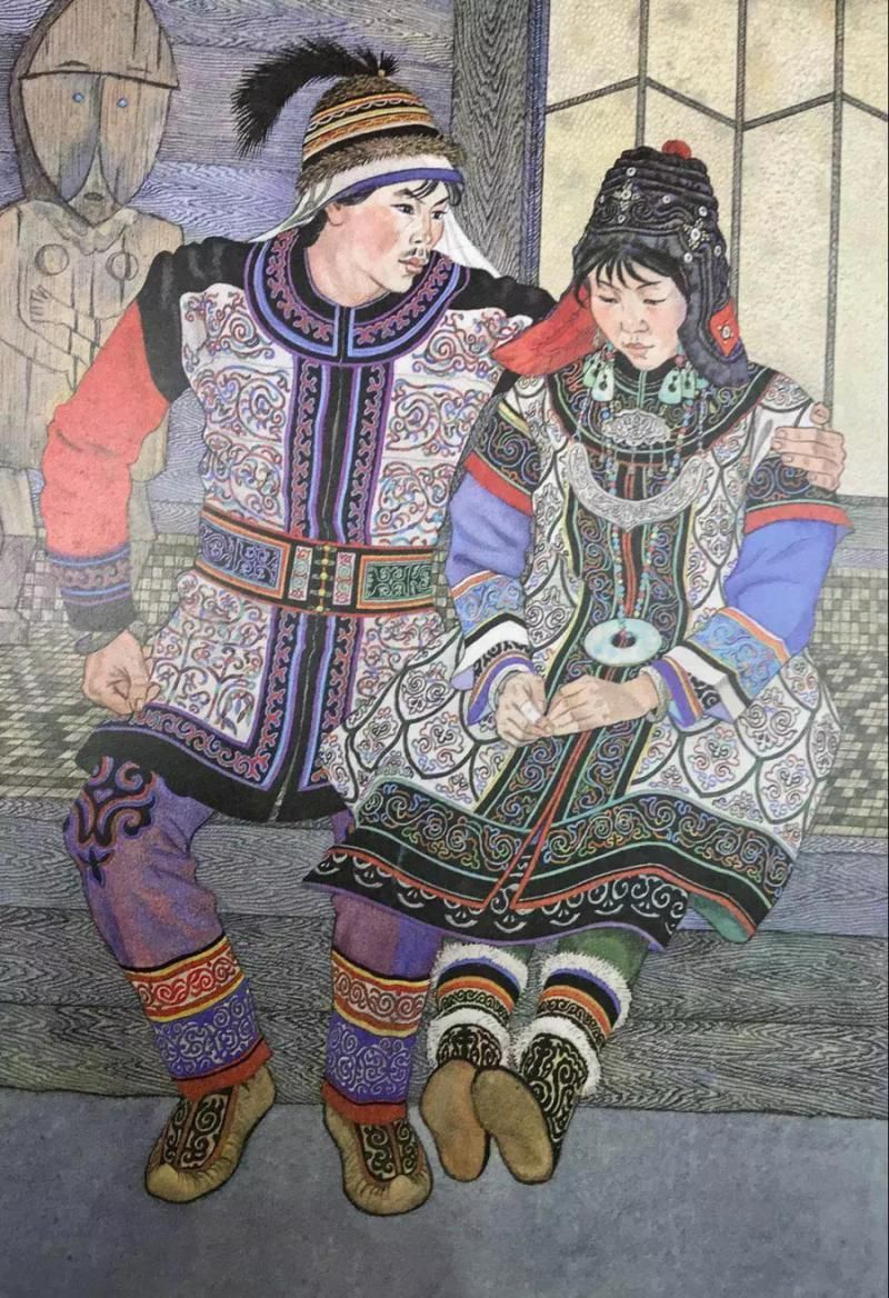 那乃族的插畫,有的用細(xì)膩的繪畫語言真實(shí)再現(xiàn)了那乃族的生活場景,有的用生動(dòng)形象的裝飾語言表現(xiàn)了那乃族的傳說故事。