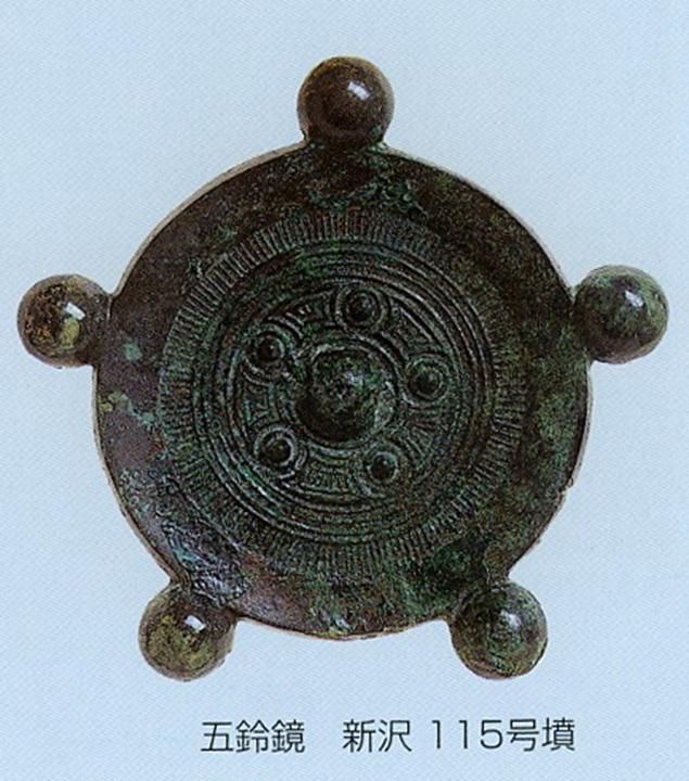 銅鏡在古墳時(shí)代被視為珍貴而神奇的器物一方面從中國輸入,另一方面也有就地制造。奈良縣出土的大型仿制連弧紋鏡和五鈴鏡(圖十四),就是日本特有的銅鏡類型。