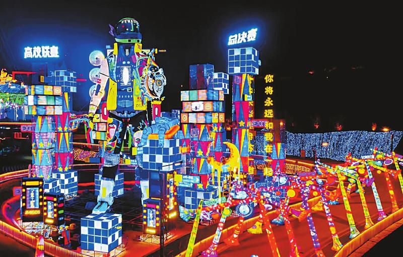 2月22日晚,第27屆自貢國際恐龍燈會從“云”上轉(zhuǎn)為線下,在中華彩燈大世界璀璨綻放。