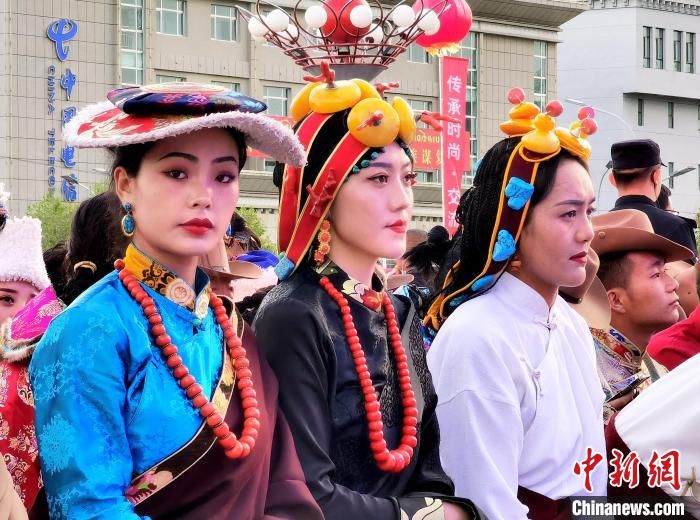圖為圖為身著藏族服飾的民眾?!∑钤鲚?攝