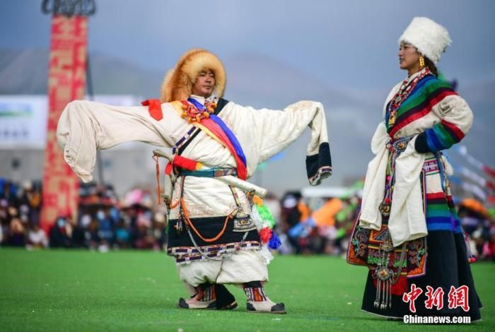 資料圖為西藏自治區(qū)拉薩市當(dāng)雄縣賽馬節(jié)上的藏族傳統(tǒng)服飾表演。 中新社記者 貢嘎來松 攝