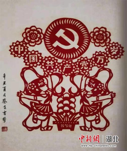 在中國共產(chǎn)黨成立100周年之際,棗陽市非物質(zhì)文化遺產(chǎn)傳承人蔡世吉,以紙、刀、剪等工具,創(chuàng)作出一幅幅精美絕倫的剪紙藝術(shù)作品,謳歌黨的豐功偉績,表達(dá)對(duì)祖國繁榮富強(qiáng)的美好祝愿。