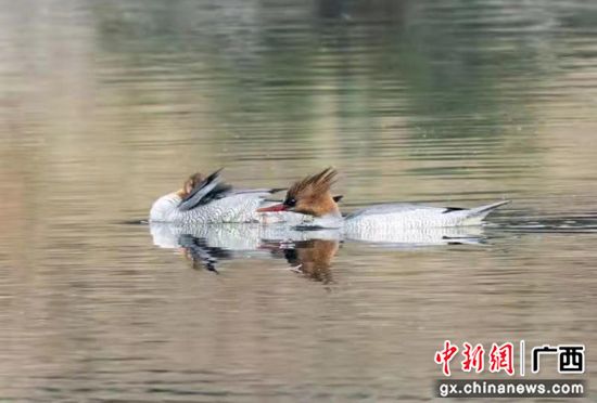 廣西荔浦市荔江流域首次發(fā)現(xiàn)國家一級保護(hù)動物:中華秋沙鴨。張德林 攝