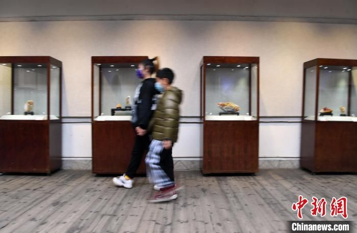 中國工藝美術大師葉子賢壽山石雕傳承展吸引觀眾觀看?!∮浾邉⒖筛?攝