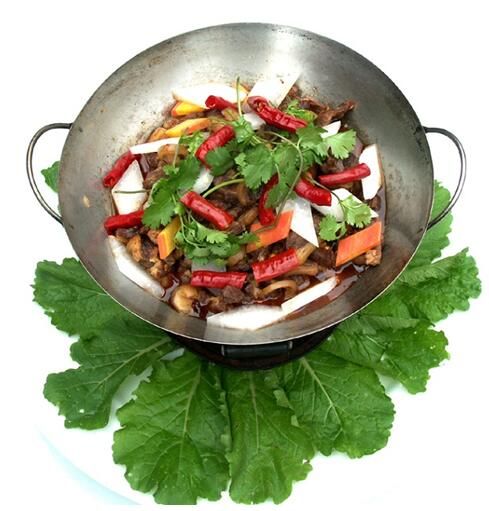 “蘿卜羊”為羅甸布依族人民新創(chuàng)制的一道享譽(yù)縣內(nèi)外的名菜。羅甸山多、雨多、草茂,氣候溫和,在這塊得天獨(dú)厚的適宜于發(fā)展畜牧業(yè)的土地上,當(dāng)?shù)厝罕姵浞掷锰烊徊輬?chǎng)資源放牧黑山羊。羅甸黑山羊?yàn)榱_甸特有的優(yōu)良羊種,肉質(zhì)細(xì)嫩,無值味,營養(yǎng)豐富,活羊遠(yuǎn)銷廣東、廣西、湖北、湖南、四川、重慶等地。 “蘿卜羊”制作工序并不復(fù)雜,它以黑山羊肉和白蘿卜為主料,配以羅斛辣椒(本地土產(chǎn)辣椒)、木姜、砂仁、花椒等配料,通過合理加工調(diào)配而成。此道菜色澤悅目,羊肉細(xì)嫩,油而不膩,天膻味,蘿卜軟而不爛,營養(yǎng)豐富,口感極佳,食之能強(qiáng)身健體,延年益壽。此道菜為羅甸特有的一道名菜,它不僅為當(dāng)?shù)貜V大群眾所鐘情,亦為四方賓客到羅甸必品嘗的一道美味佳肴。