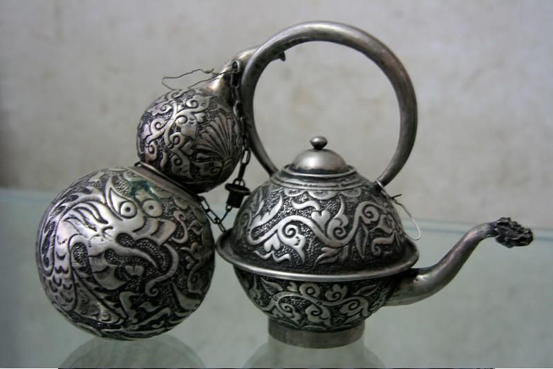 銀飾造型通常以龍、虎、牛、馬、鳥、昆蟲、花卉等動植物圖案為元素,經(jīng)過溶銀、錘片、拉絲、鑄模、做花、絞絲、編花、焊接、洗花等多道工序完成。成型的銀飾在最后一道工序中,需放入硼砂與火硝的混合液中浸泡,再高溫烘干并加熱至紅色,然后再放入明礬水中洗滌,去除污物和雜質(zhì),即可生成銀金屬特有的質(zhì)感和光亮。劍河苗族銀飾工序繁復(fù),技藝精湛,造型栩栩如生,成品精美絕倫。