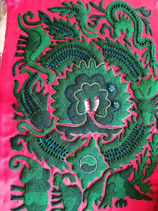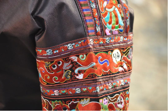 臺江苗繡的圖畫紋飾豐富,有造型獨(dú)特的飛禽走獸、花鳥魚蟲,還將人與大自然的其他動植物在繡片上融為一體,體現(xiàn)了苗族人民對自然萬物的崇拜,同時(shí)也折射出苗族屢經(jīng)遷徙的歷史變遷。