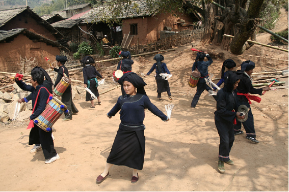 在雙江,有一個偏遠(yuǎn)的小山村,因這里“出產(chǎn)”蜂桶鼓和蜂桶鼓舞而遠(yuǎn)近聞名,它就是邦丙鄉(xiāng)南直村。蜂桶鼓和蜂桶鼓舞是雙江布朗人的獨(dú)門絕活,完全屬于雙江布朗人。蜂桶鼓源于它的形狀像民間養(yǎng)蜂的蜂桶而得名,而蜂桶鼓的由來卻充滿了神秘的傳奇色彩。相傳: