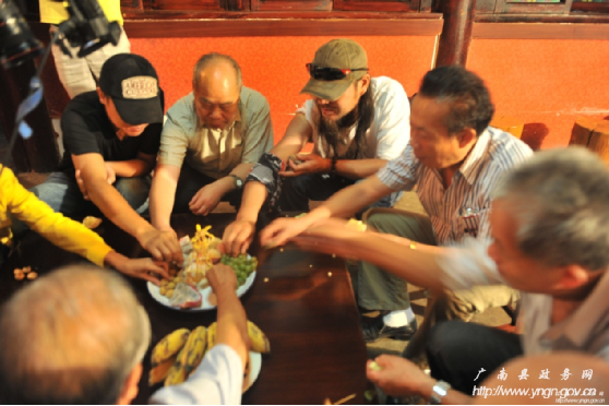 西行音樂公路之旅在享用土司盛宴——“三滴水”后,劇組被壯民族創(chuàng)造的具有深厚民族文化貫穿其中的民族飲食文化所折服,被壯民族熱情好客的情緒所感染。西行音樂公路之旅執(zhí)行導(dǎo)演劉暢說,北京有滿漢全席,想不到在廣南這個地方也有壯族自己的“滿漢全席”,他說,我和我的小朋友們都驚呆了!