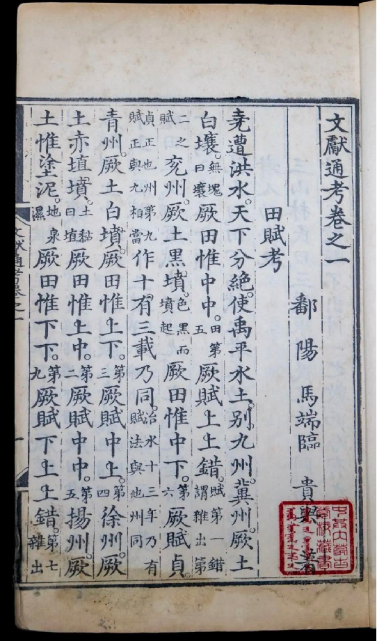 《文獻(xiàn)通考》所述歷代典章制度,上起上古,下至南宋寧宗嘉定末年。該書立目參照《通典》,并有所發(fā)展。全書分為二十四考,每一考前有小序,說(shuō)明著述的成規(guī),考訂的新意,每考之下又分為若干子目,子目?jī)?nèi)容皆按時(shí)間先后排列。撰寫體例是按文、獻(xiàn)、考三個(gè)層次排列,凡頂格排行者,即所謂“文”,也就是“敘事”部分。凡低一格排行者,即所謂的“獻(xiàn)”,也就是“論事”部分。凡低兩格排行者,即所謂“考”,也就是作者自己的議論,其內(nèi)容包括指點(diǎn)歷史演變的線索、評(píng)判是非、考辨史料和解釋名物等。