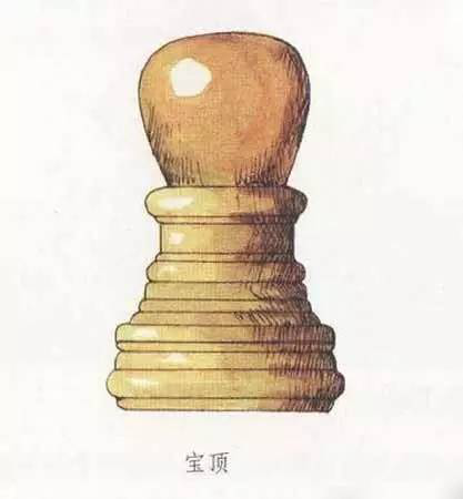 在建筑物的頂部中心位置,尤其是攢尖式屋頂?shù)捻敿馓?,往往立有一個(gè)圓形或近似圓形之類的裝飾,它被稱為寶頂。在一些等級(jí)較高的建筑中,或者確切地說(shuō),在皇家建筑中,寶頂大多為銅質(zhì)鎏金材料制成,光彩奪目。