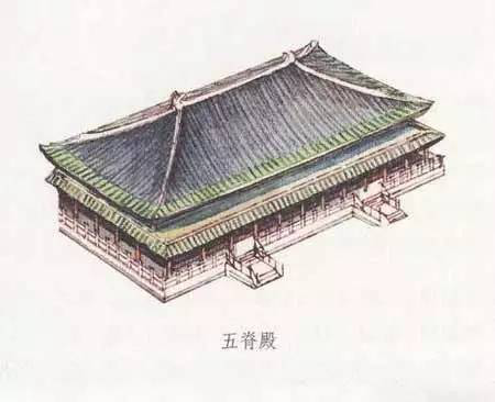 廡殿和歇山一樣是清式說(shuō)法,在此之前它又有五脊殿等名稱。因?yàn)閺T殿式屋頂上共有五條脊,即,一條正脊和四條垂脊,所以稱為五脊殿。