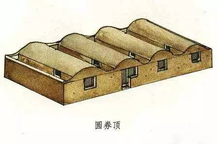 我國(guó)的山西一帶,有一種用磚或土坯砌筑的半圓形的拱頂房屋,或是兩間,或是三間,或是數(shù)間相連,外形圓潤(rùn)優(yōu)美而又給人完整與統(tǒng)一之感。這種拱頂形式就是圓劵頂,也可以直接稱為拱頂。