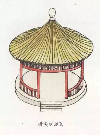 攢尖式屋頂沒(méi)有正脊,而只有垂脊,垂脊的多少根據(jù)實(shí)際建筑需要而定,一般雙數(shù)的居多,而單數(shù)的較少。如,有三條脊的、有四條脊的、有六條脊的、有八條脊的,分別稱為三角攢尖頂、四角攢尖頂、六角攢尖頂、八角攢尖頂?shù)?。此外,還有一種圓形攢尖頂式,也就是沒(méi)有垂脊。