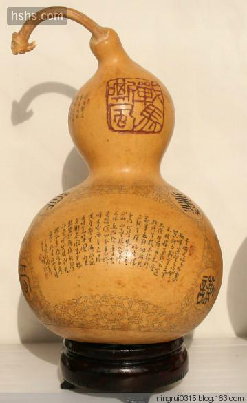 葫蘆雕集繪畫、書法、篆刻藝術(shù)于一體,傳承和發(fā)展了我國傳統(tǒng)“葫蘆文化”。甘肅的雕刻葫蘆最早出產(chǎn)于蘭州,距今約100多年,據(jù)說早期的蘭州雕刻葫蘆比較簡單,對葫蘆不會做刮皮、磨光等加工處理,也不填色;只是在葫蘆表皮雕刻出山水、風(fēng)景或戲劇人物,作為兒童的玩具,在街頭巷尾出售。到了清代光緒年間,秀才蘭州人李文齋對葫蘆雕刻工藝做了改進(jìn)。他針對當(dāng)時雕刻表面粗糙、題材單調(diào)的弊端,首先將葫蘆原生表皮刮去、磨光,并用鏹水混合燃料,染成紅黃二色,是雕刻的景物不易脫落;其次,擴(kuò)大圖案創(chuàng)作題材,在原有山水、花草等圖案基礎(chǔ)上,增加了如《桃花源記》、《蘭亭集序》、《竹林七賢》等歷史文化和神話故事,形成了圖文并茂的題材格局;最后是在雕刻工具上采用了以針代刀,使圖案形象更加情景交融,栩栩如生。其雕刻葫蘆的特點(diǎn)主要是求其意態(tài)之美,追求神似;人物寥寥數(shù)筆,山水花卉濃淡相宜,形神兼具,求其風(fēng)雅;題款文字、細(xì)如蚊足,點(diǎn)綴成行,瀟灑自如。