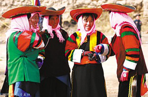 隨著時(shí)代的更替,土族女性的服飾發(fā)生了很大變化,有的傳統(tǒng)服飾已消失,有的服飾經(jīng)過(guò)推陳出新,重放光彩。如舊時(shí)的繡花高領(lǐng),如今變成直翻兩用領(lǐng);蓋在“扭達(dá)”上的長(zhǎng)頭巾——“扭達(dá)爾秀巾”,變成了今日土族女性使用的短頭巾。現(xiàn)今,廣大土族女性,不僅喜穿本民族服飾,而且還愛(ài)著時(shí)尚服飾,她們或使土族服飾時(shí)裝化,或使時(shí)裝土族服飾化,豐富了土族的服飾文化。