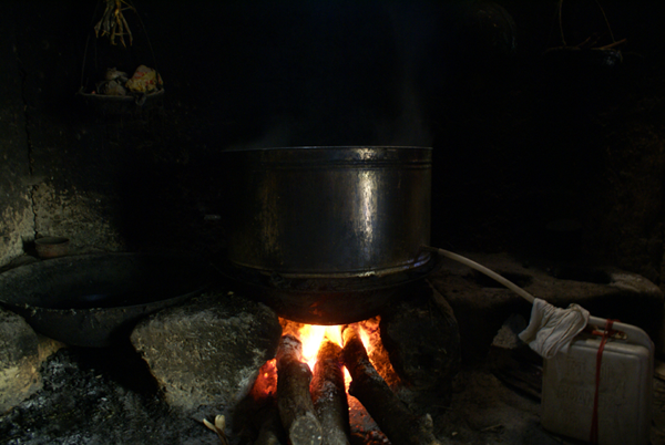 毛南族最具獨特風味要數(shù)“毛南三酸”,它們是“羅番”“腩醒”“甕煨”(均毛南語)?!傲_番”是一種酸螺絲湯,調以蔥花、番茄、青椒和油、鹽等作料煮開,用以送飯,可增進食欲?!傲_番”除增強消化外,在大暑熱天還有解熱的作用,所以毛南人常用它做清涼飲料,以防中暑?!半钚选笔且环N用豬肉牛肉腌制而成的別有風味的酸肉。“甕煨”是一種特殊的鹽水壇,其原料主要是鹽水、藠頭、生姜和青椒。鹽水可防止食物變腐臭。一壇“甕煨”可腌制多種菜味,如蘿卜、豆角、黃瓜、刀豆等,但最美的是腌豬耳朵、豬頭皮、豬腳和豬尾巴。先將它們煮熟,冷卻后放入壇里,24小時后即變酸,保留十天半月也不腐。因此,人們把“甕煨”譽為“節(jié)能電冰箱”?!爱Y煨”腌制的肉類,毛南人叫“腩清”,也是待客宴席上的佳肴之一(圖為毛南族燒酒)。