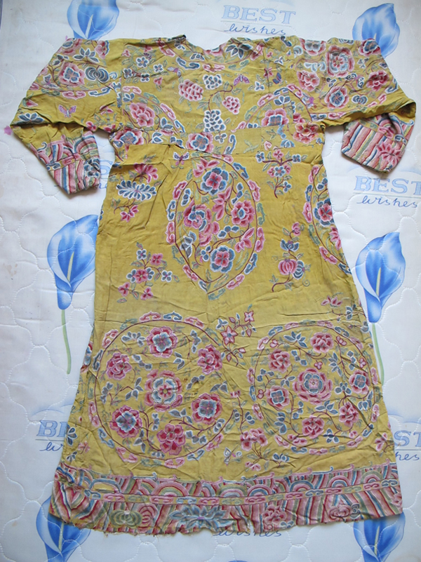 烏孜別克族女性喜愛穿連衣花裙,開領(lǐng),寬大多褶,不束腰帶。上衣比較短,只及大腿部,無領(lǐng)、無袖、對襟,下擺的正中和正面兩邊都開衩,形成兩片寬帶。襟和寬帶的邊都繡花。出門時還要穿斗篷、蒙面紗,從頭到腳都不能外露。