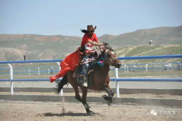 裕固族人民非常喜愛賽馬。和蒙古族等歷史上的游牧民族一樣,裕固族也被稱為“馬背上的民族”。裕固族在傳統(tǒng)節(jié)日、廟會(huì)、祭祀、婚禮等重大場合都要舉行賽馬活動(dòng)。平時(shí),青年男女走到一起,為了比試騎術(shù)高低、坐騎優(yōu)劣,經(jīng)常即興比賽。大家議定一座山、一棵樹或一戶人家為終點(diǎn),一人吆喝,眾人揚(yáng)鞭催馬飛奔。正規(guī)的賽馬活動(dòng)則由要組織,馬匹少則數(shù)十匹,多則上百匹。