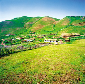 新疆維吾爾自治區(qū)昌吉回族自治州奇臺縣大泉鄉(xiāng)黑溝村村落遠(yuǎn)眺