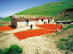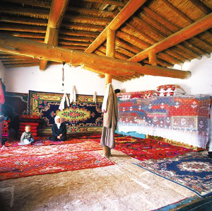 土房的室內(nèi)除有的搭火炕外,其它的裝飾和木房的一樣。到了采收紅花的季節(jié),鮮紅欲滴的紅花曬滿了院子,形成獨(dú)特的風(fēng)景。不論哪個房間,都可作為臥室,也用于待客,廚房和儲藏室單建,有的還單建馕坑。