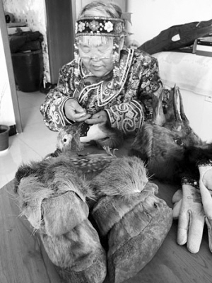 葛長(zhǎng)云是制作狍皮手工藝品的高手。 資料圖片