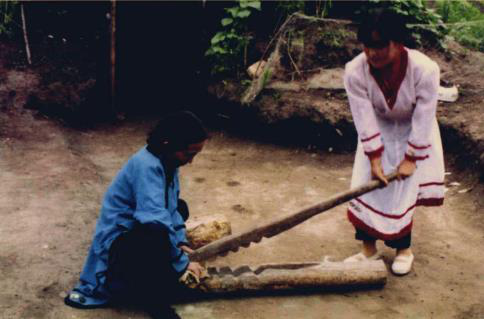 圖八 圖九 赫哲族婦女用木鍘刀熟魚(yú)皮 將熟好的魚(yú)皮連成大片
