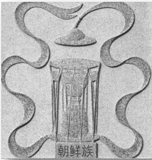 長(zhǎng)鼓是朝鮮族最有特色的民間樂器。長(zhǎng)鼓也稱杖鼓、兩杖鼓,是古代細(xì)腰鼓的變體。長(zhǎng)鼓的鼓身由木制作,呈圓筒形,外形兩端粗而中間空,長(zhǎng)度為70-80厘米左右。演奏時(shí)用右手持槌敲擊鼓面,左手拇指放在鼓框邊,用其余四指拍擊鼓面,演奏技巧豐富多變。長(zhǎng)鼓、象帽共同組成的圖案構(gòu)成了長(zhǎng)白山天池輪廓,表現(xiàn)了朝鮮族擅長(zhǎng)歌舞的民族特點(diǎn)和團(tuán)結(jié)奮進(jìn)、樂觀開放的精神品格。