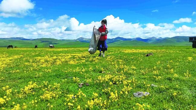 自那以后,才培和更求拉毛大手牽小手,從這個(gè)牧帳撿到那個(gè)牧帳,從日出撿到日落……更求拉毛已記不清到底撿了多少塑料袋、廢鐵皮、飲料瓶。但在她看來,嘉塘的遠(yuǎn)山和近水,終有一天會如藍(lán)天白云般凈澈,這也成了她和父親的共同夢想。