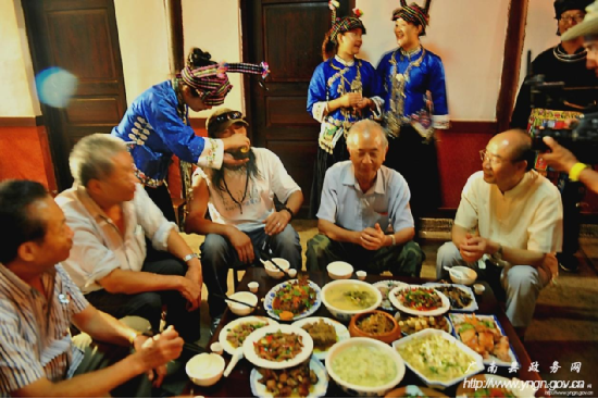 西行音樂(lè)公路之旅行至廣南,當(dāng)?shù)仄髽I(yè)為讓旅行團(tuán)隊(duì)充分了解廣南的飲食文化及人文風(fēng)俗,經(jīng)過(guò)多方走訪,把廣南土司后代、地主大戶后代等曾經(jīng)享受過(guò)土司盛宴的老人集在一起,共同研究,精心準(zhǔn)備,聘請(qǐng)當(dāng)?shù)孛麖N,制作出消失48年之久的土司盛宴——“三滴水”。