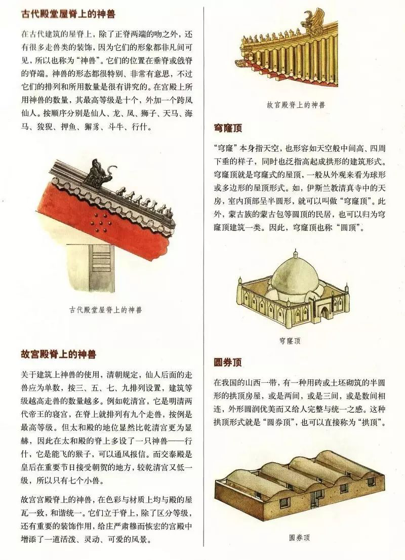 中國(guó)古代建筑屋頂不僅樣式多,而且組成部分也有好幾種,主要由屋面、屋脊等部分組成,而且有嚴(yán)格的等級(jí)制度。