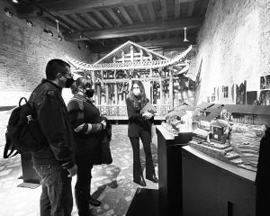 2021年5月,第17屆威尼斯國(guó)際建筑雙年展官方平行展“兩河口,一個(gè)土家會(huì)聚之地的再生”在威尼斯禪宮與宣恩縣兩河口村同時(shí)連線開(kāi)幕。圖為威尼斯禪宮展覽現(xiàn)場(chǎng)。 閔天怡供圖