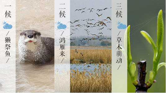 我國古代將雨水分為三候:“一候獺祭魚,二候鴻雁來,三候草木萌動?!?此節(jié)氣,水獺開始捕魚了,人們將魚擺在岸邊先祭祀后食用;五天過后,大雁開始從南方飛回北方;再過五天,在“潤物細無聲”的春雨中,草木因地中陽氣的上騰而開始抽出嫩芽。從此,大地漸漸開始呈現(xiàn)出一派欣欣向榮的景象。