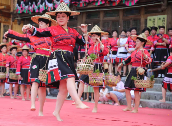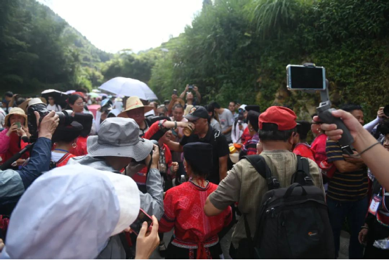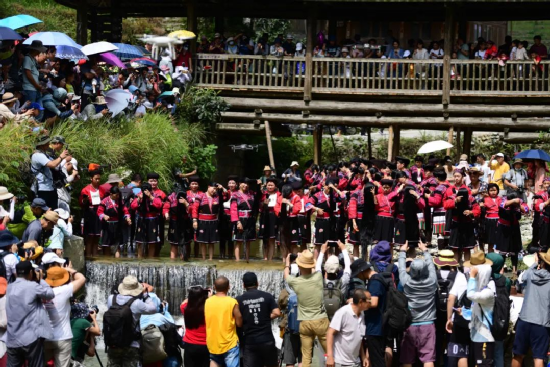 曬衣節(jié)當(dāng)天還進(jìn)行了嗩吶鑼鼓迎賓、瑤嫂長發(fā)梳妝展示、“抬金狗”送祝福、紅瑤服飾加工展示、紅瑤集體婚禮等活動(dòng),豐富多彩的民俗文化、濃郁的民族風(fēng)情,讓各地游客流連忘返。