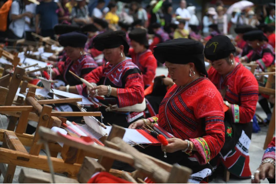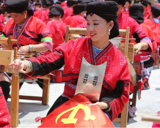 2014年,龍勝瑤族服飾(紅瑤服飾)以其精湛的手工藝和文化底蘊(yùn)入選國家級(jí)非物質(zhì)文化遺產(chǎn)代表性項(xiàng)目名錄擴(kuò)展項(xiàng)目名錄。如今的“曬衣節(jié)”已不僅是紅瑤的傳統(tǒng)佳節(jié),“農(nóng)歷六月六,廣西龍脊看紅衣”等曬衣節(jié)系列活動(dòng)已成為桂林山水游的一張名片,讓各地游客充分感受多姿多彩的民族風(fēng)情。紅瑤同胞們用自己獨(dú)特的方式,為中國共產(chǎn)黨成立100周年獻(xiàn)上自己的祝福。