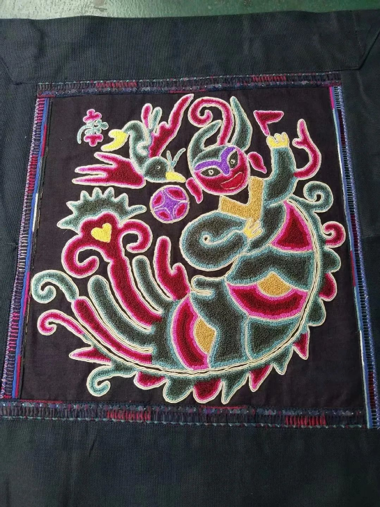 臺江苗繡的圖畫紋飾豐富,有造型獨特的飛禽走獸、花鳥魚蟲,還將人與大自然的其他動植物在繡片上融為一體,體現(xiàn)了苗族人民對自然萬物的崇拜,同時也折射出苗族屢經遷徙的歷史變遷。