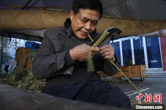 冬意凜然,來到浙江省湖州市安吉縣章村鎮(zhèn)章村村“大青竹藝”工作坊,還未進門,就見到工作坊主人黃大青編織的身影。