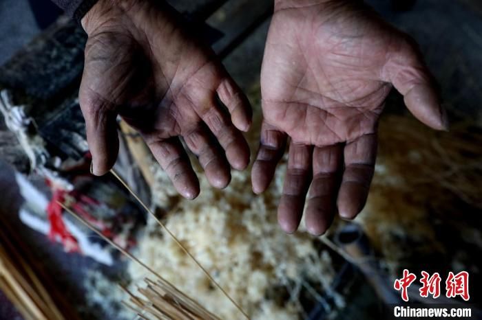 竹編手藝是個技術(shù)活,更是個傷手的活。黃大青傷痕累累的雙手,便是竹條經(jīng)年累月留下的“印記”。