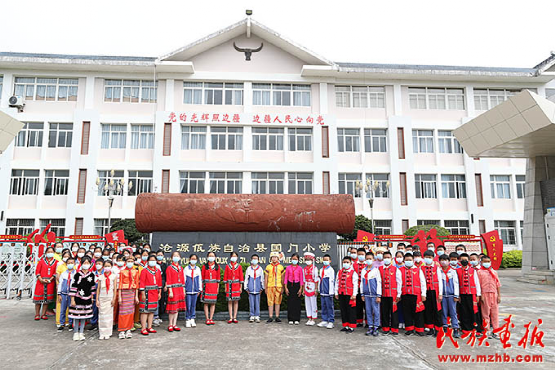 云南省臨滄市滄源佤族自治縣國(guó)門(mén)小學(xué)是一所位于中緬邊境線上的縣直小學(xué),創(chuàng)辦于1937年2月,曾四易校址,六更校名。學(xué)?,F(xiàn)有38個(gè)教學(xué)班,在校學(xué)生1668人,其中少數(shù)民族學(xué)生1172人。在開(kāi)展民族團(tuán)結(jié)進(jìn)步教育工作中,滄源佤族自治縣國(guó)門(mén)小學(xué)以社會(huì)主義核心價(jià)值觀為引領(lǐng),以德育工作為抓手,充分發(fā)揮少先隊(duì)組織的作用,形成了以學(xué)校為龍頭、家庭為基礎(chǔ)、社會(huì)為平臺(tái)的民族團(tuán)結(jié)育人團(tuán)隊(duì)。