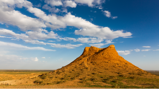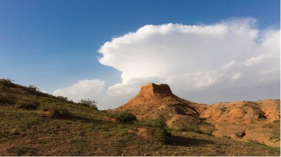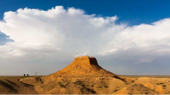 (東紅烽火臺,位于海南區(qū)巴音陶亥鎮(zhèn)東紅村,整體為紅黏土夯筑而成,現(xiàn)高9.3米)