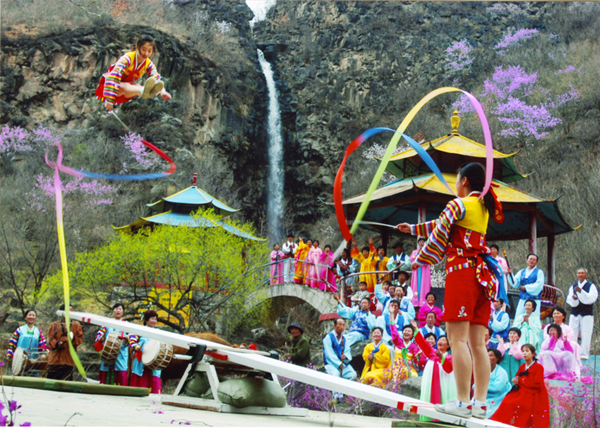 朝鮮族人民喜歡運動,愛好體育,在長期的勞動、生活中創(chuàng)造出了為大家喜聞樂見的體育項目。摔跤、跳板、拔河、蕩秋千都是其中的代表。