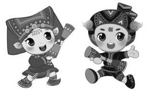 湖南省第十屆少數(shù)民族傳統(tǒng)體育運(yùn)動(dòng)會(huì)吉祥物瑤妹和瑤哥。