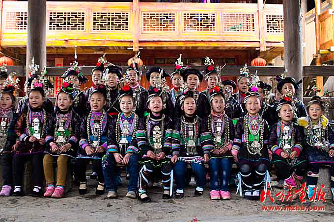 唱大歌的侗族娃。