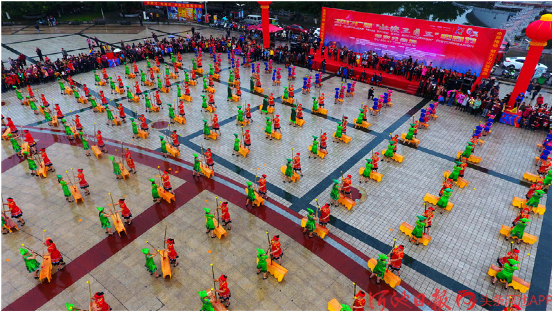 都安縣500名群眾歡聚一堂,打起扁擔(dān),喜迎“三月三”。