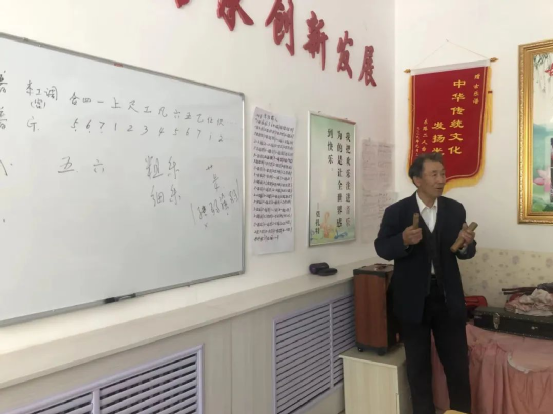 南文述從小酷愛音樂,深感傳統(tǒng)音樂的魅力,為了讓千年古韻律更好地綻放光彩,潤澤當(dāng)?shù)厝罕姷木袷澜?,南文述退休后長年收集、整理古樂曲相關(guān)資料,學(xué)習(xí)、傳承古樂曲演奏,在全縣范圍內(nèi)共收集到七十余首。商都縣大力挖掘和保護(hù)文化遺產(chǎn)工作開展后,為南文述免費(fèi)提供了工作室,南文述在此開辦了民族樂器培訓(xùn)班,為感興趣的群眾義務(wù)教學(xué)。目前已有學(xué)員60余人,2022年古樂曲申報(bào)成功為第七批內(nèi)蒙古自治區(qū)級非物質(zhì)文化遺產(chǎn)代表性項(xiàng)目,在當(dāng)?shù)厝罕娚顚拥木褡非笾邪l(fā)揮著越來越重要的作用。